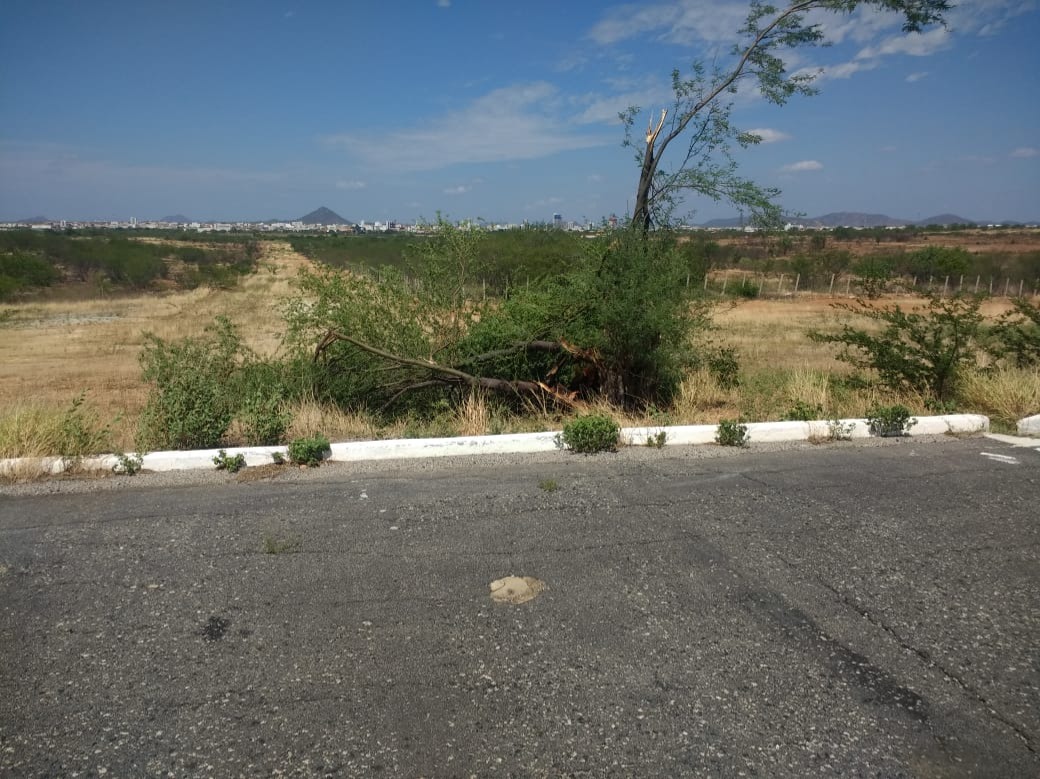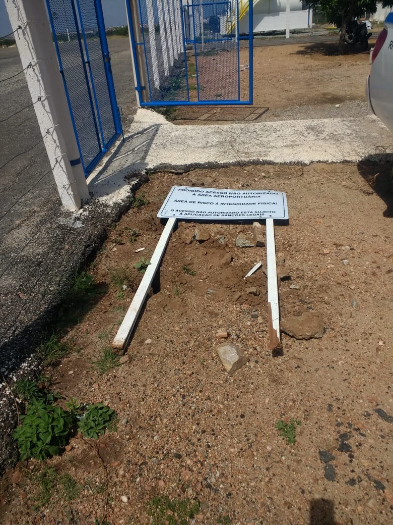 Uma placa informativa que fica na entrada do Aeródromo foi arrancada pelo forte vento, além de árvores.