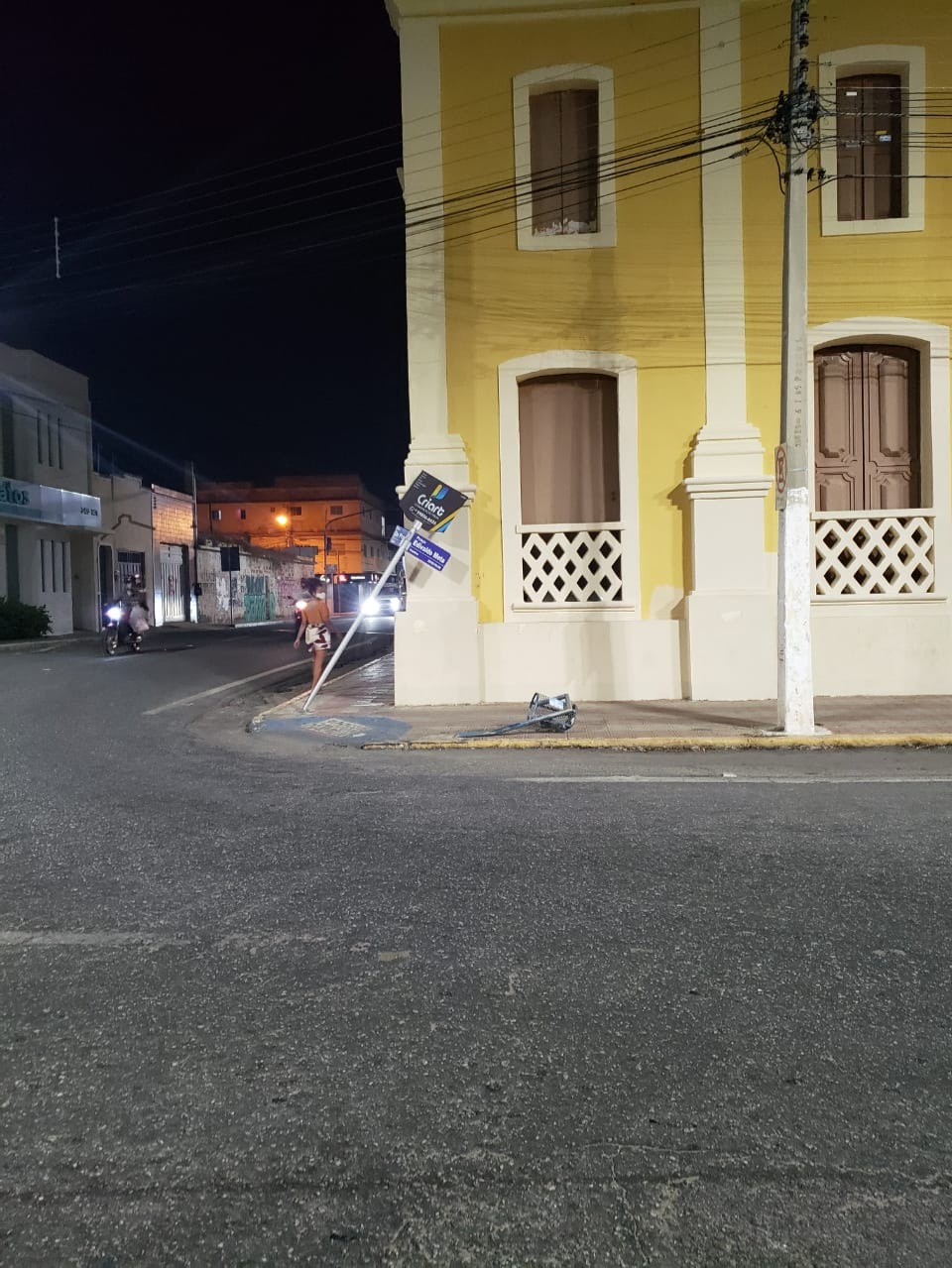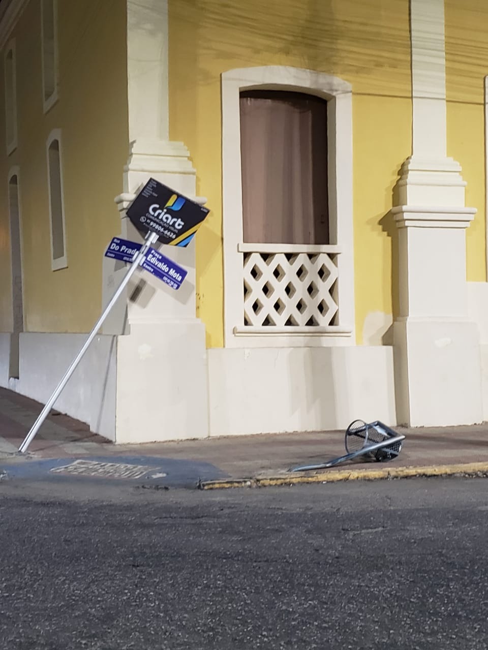 Uma carreta britrem de 9 eixos causou prejuízos ao erário público ao destruir uma lixeira e placas indicativas de ruas na calçada da Igreja de Nossa Senhora da Conceição em Patos-PB. Era por volta das 19h desta quinta-feira (24), quando o motorista que seguia pela Rua do Prado foi fazer uma manobra arriscada no local.