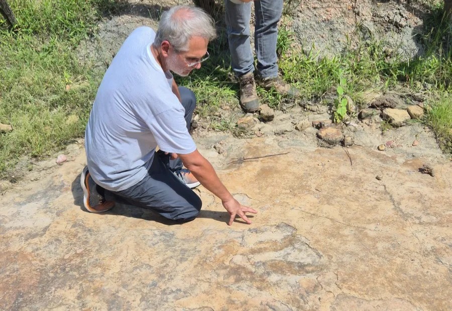 “Fazendo a revisão bibliográfica dos materiais, dos locais com pegadas já identificadas no Brasil, tanto no sul do Brasil quanto no centro-oeste do país, no sudeste, no norte e nordeste, nunca tinha sido identificada uma pegada tão grande de um dinossauro terópodes, com uma pegada tridáctila (três dedos) desse porte. Então, após a revisão bibliográfica dos registros que identificam pegadas de dinossauro, chegamos nessa conclusão”, disse.