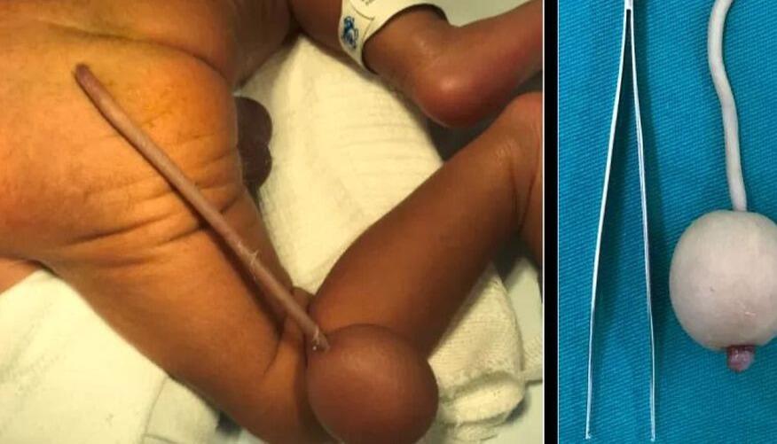 Um bebê brasileiro nasceu com uma cauda de 12 centímetros e uma bola de quatro centímetros na extremidade. O nascimento foi realizado no Hospital Infantil Albert Sabin, em Fortaleza. O recém-nascido veio ao mundo ainda prematuro, com 35 semanas, no início deste ano. O caso foi noticiado pelo Journal of Pediatric Surgery Case Reports.