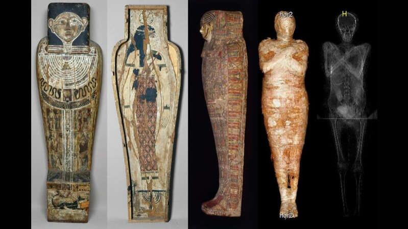 Uma análise mais detalhada convenceu os pesquisadores de que o corpo era feminino, pois não havia sinal de um pênis. Uma visualização 3D do corpo mostrou claramente cabelos longos e cacheados e seios mumificados, de acordo com a equipe.