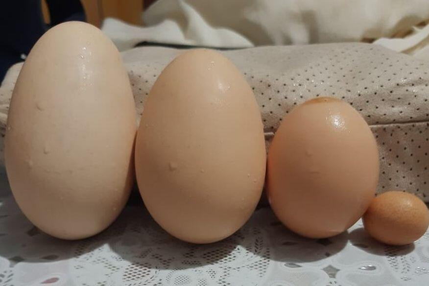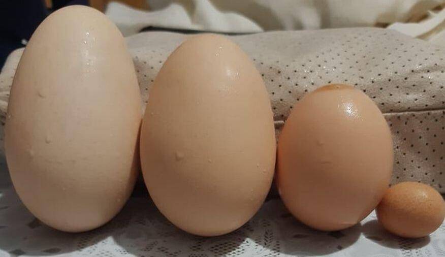 "Ela é saudável. Nós a temos há três anos, mas só de um mês para cá ela vem botando esses ovos diferentes. Minha mãe todo dia colhe ovo e, quando ela viu isso, achou estranho. O menor [tem só 1,5 centímetro e tem alguns que são bem maiores. O maior de todos não cheguei a medir, porque nós quebramos para ver como era dentro", diz.