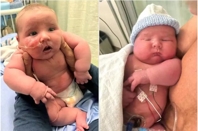 Nascido em 4 de julho de 2024, o bebê Grayson veio ao mundo no Orillia Soldiers’ Memorial Hospital, em Ontário, pesando 7,08 kg e medindo 62,2 cm. Stacie contou à revista americana People que, ao ver seu filho pela primeira vez, o amor foi imediato. "Sem saber como seria um bebê de 7 kg, eu estava nervosa. Mas quando vi nosso lindo bebê fofinho, foi amor à primeira vista", disse. Já para Paul, ver o filho pela primeira vez foi uma mistura de “alegria pura com um pouco de choque e espanto”.