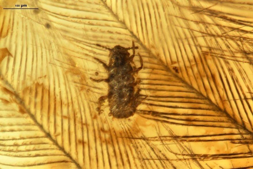 Segundo os pesquisadores, 10 insetos da espécie Mesophthirus engeli com cerca de 0,2 milímetros foram encontrados nas plumas. "Uma das duas penas é consistente com as encontradas ao lado de um fragmento de cauda de dinossauro birmanês, enquanto a outra parece mais semelhante àquelas encontradas ao lado de pássaros com dentes primitivos", explicou o paleontólogo Ryan McKellar, que não esteve envolvido no estudo, ao Smithsonian.