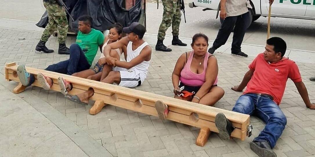 Na última semana, a prefeitura municipal de Tuchín, em Córdoba, na Colômbia, aumentou a punição aos moradores que desrepeitam as regras de isolamento social decretadas para evitar o avanço do novo coronavírus na região. Agora, aqueles que são flagrados vagando pelas ruas sem motivo, infringindo a quarentena obrigatória, podem receber o castigo de serem presos pelos pés em uma estrutura de madeira conhecida como cepo em uma das praças públicas da cidade.
