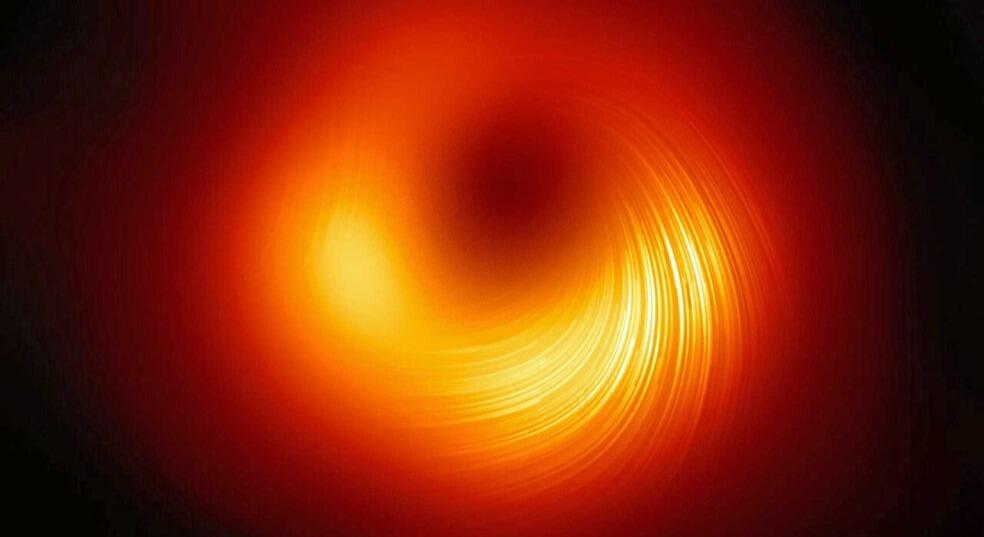 A polarização revelou a estrutura do campo magnético localizado na borda do buraco negro e tornou possível produzir uma imagem precisa de sua forma, semelhante a um turbilhão de filamentos.