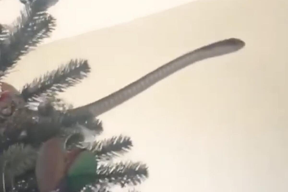 Uma família notou que a árvore de Natal tinha um "enfeite" diferente do que se costuma usar para enfeitar o objeto. Depois de observarem, eles encontraram uma cobra venenosa vivendo no local.