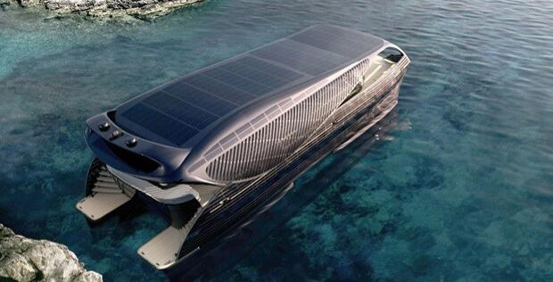 Uma empresa suíça chamada Solarimpact Yacht lançou o conceito de um iate movido a energia solar que promete viajar o mundo sem necessidade de parar para reabastecer. O barco de 78 pés (24 metros) se chama SolarImpact e tem um painel solar de 300 m² que pode gerar até 320 kWh em um dia ensolarado.