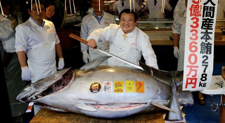 Kiyoshi Kimura, dono da rede Sushi Zanmai, pagou 333,6 milhões de ienes (US$ 3,1 milhões) pelo peixe de 278 quilos capturado na costa da província de Aomori, no norte do Japão, ou o dobro do que havia pago seis anos atrás.