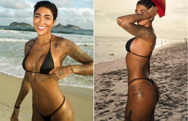 A influenciadora digital Dhiovanna Barbosa, de 24 anos de idade, irmã do jogador de futebol Gabigol, de 29 anos, abriu o álbum de um dia de praia na Barra da Tijuca, na zona oeste do Rio de Janeiro. Com os cabelos curtos, ela postou fotos tanto dentro do mar como nas areias da capital fluminense.