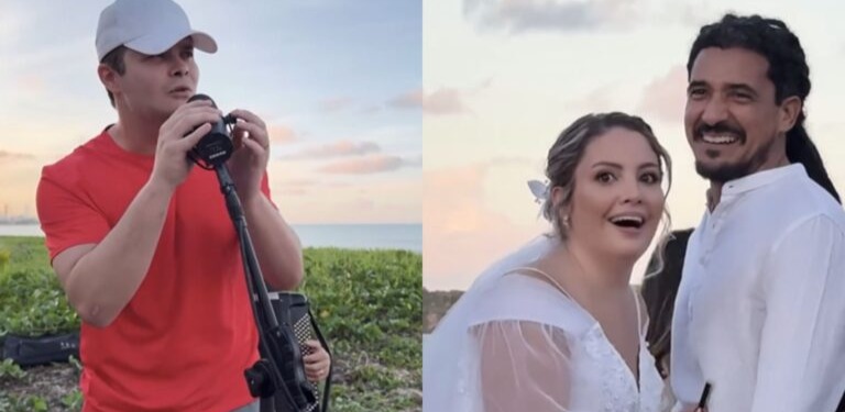 No vídeo, é possível ver a reação surpresa dos noivos, que sorriem e começam a cantar junto com o artista. Até o início da manhã desta sexta-feira (13), o vídeo tinha mais de 3,8 milhões de visualizações.