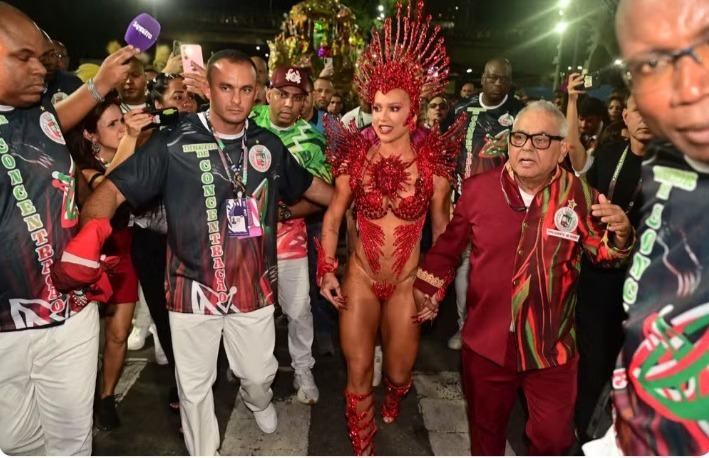 Tapa-sexo de Virginia descola no meio do desfile da Grande Rio
