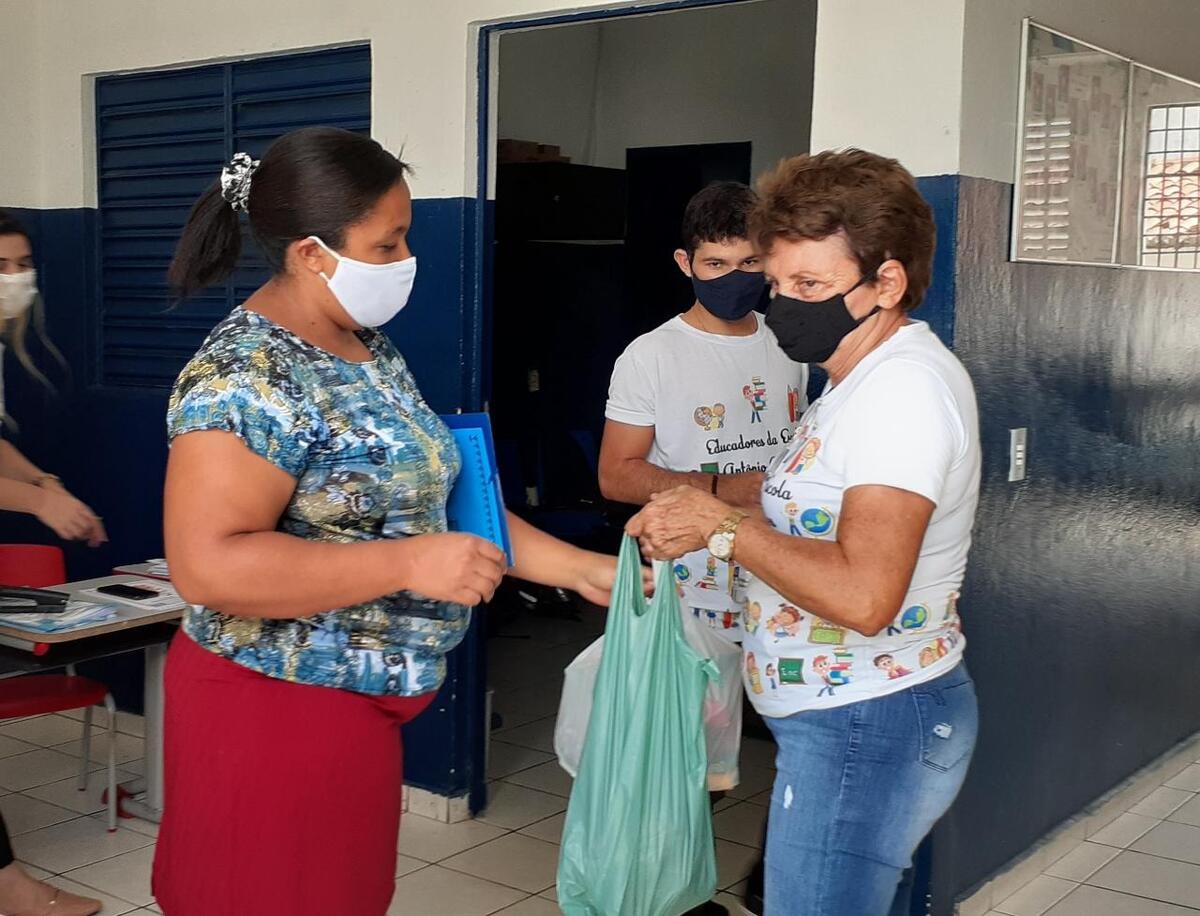 “É com muita satisfação e empenho que estamos aqui hoje com nosso quadro de professores e cuidadores fazendo as entregas. Então, é com muita alegria que a clientela recebe esses kits. Estamos muito felizes por estarmos todos aqui trabalhando. Aproveitamos ainda para entregar as atividades referentes à semana,” disse Eliete Nóbrega.