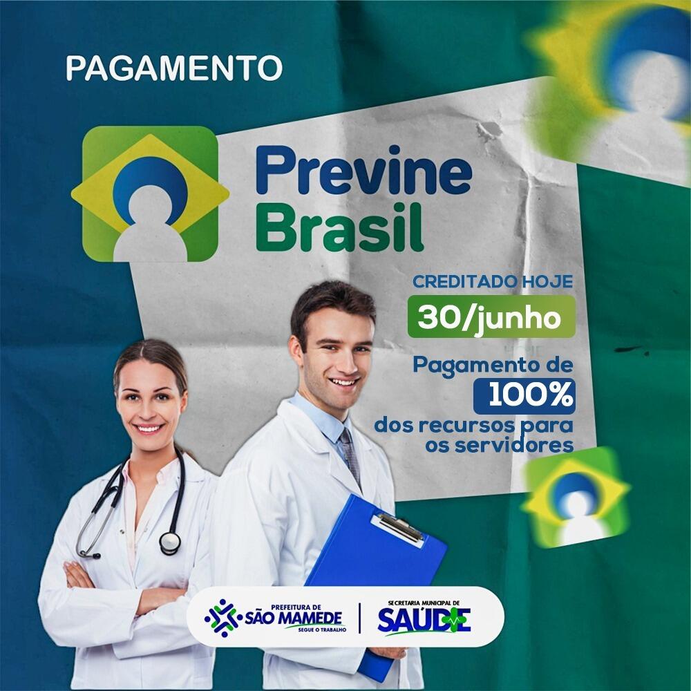 A Prefeitura Municipal de São Mamede por meio da Secretaria de Municipal de Saúde creditou nas contas dos servidores da saúde neste dia 30/06 o pagamento referente ao incentivo do Programa Previne Brasil. Esse Programa tem como principal objetivo ampliar a qualidade da assistência à saúde para os usuários, fortalecendo a estratégia de Saúde da Família no município e também qualificando e gratificando os envolvidos no desempenho do programa, onde os profissionais da Atenção Básica são primordiais no desenvolvimento do programa.