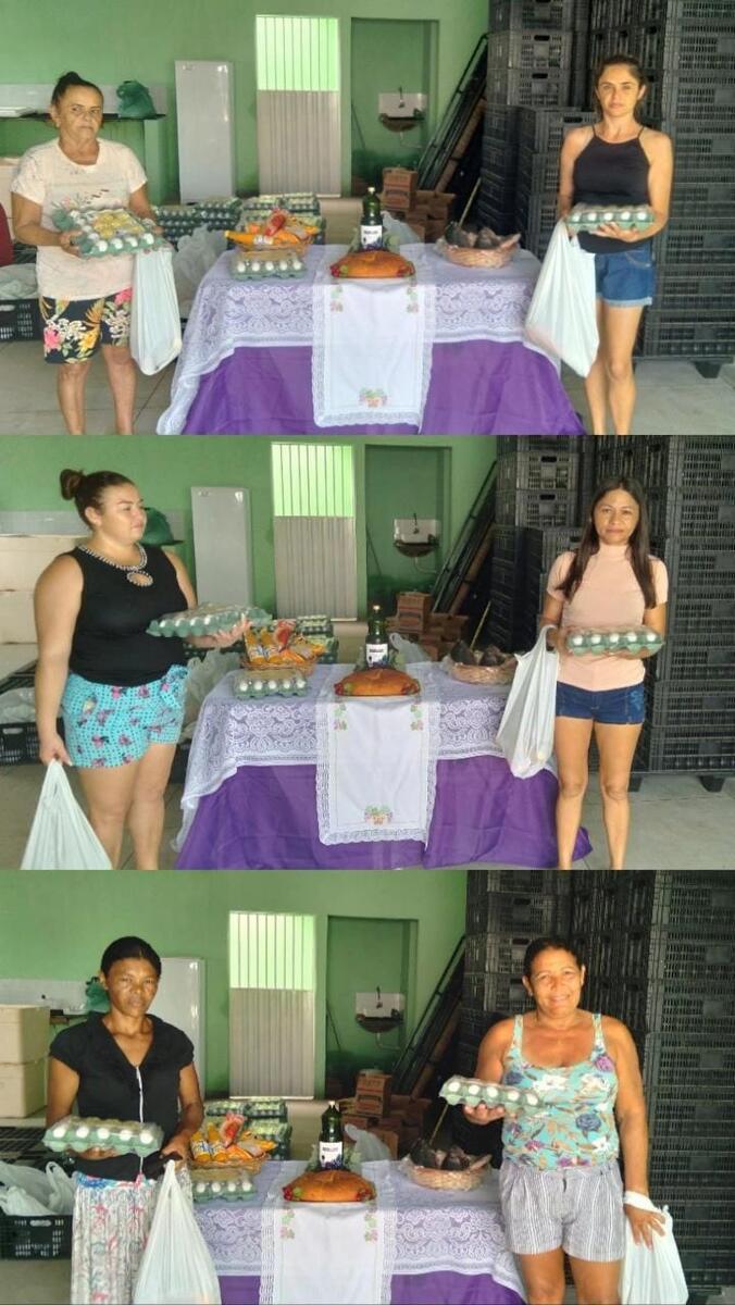 Nas cestas entregues contêm; Peixes, Ovos, Macarrão, Arroz e Tempero.