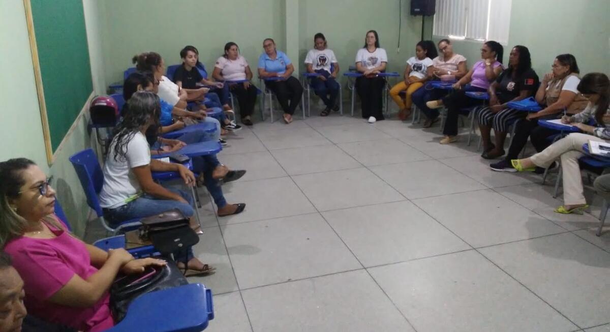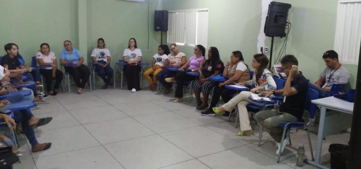 A reunião contou com a participação da rede intersetorial e socioassistencial, dos Vereadores Sara Rodrigues e Manoel do Posto e de Famílias que fazem parte do projeto no município.