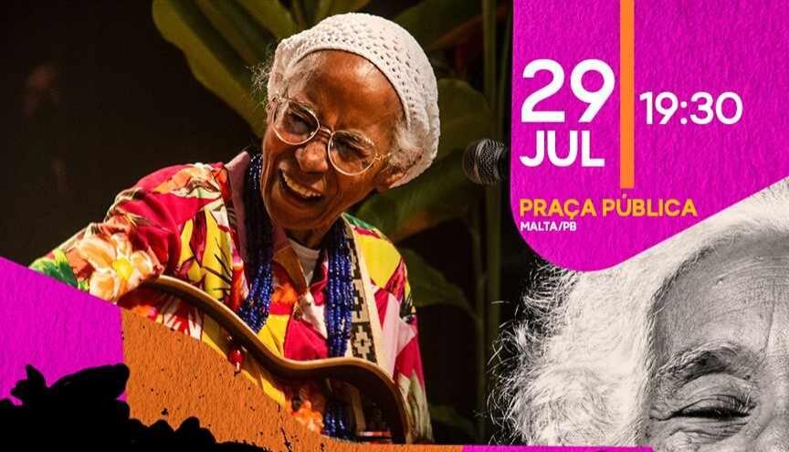 O encerramento da programação da 2° edição do Julho das Pretas no município de Malta acontece sexta-feira, 29 de julho, com um show da cantora, compositora, instrumentista e escritora, Cátia de França. Uma mulher negra, paraibana e arretada. O local escolhido para realização desse grande evento foi a praça pública de Malta, localizada em frente à igreja Matriz de Nossa Senhora da Conceição, o show terá inicio às 19h30, totalmente gratuito e você é o nosso convidado especial.