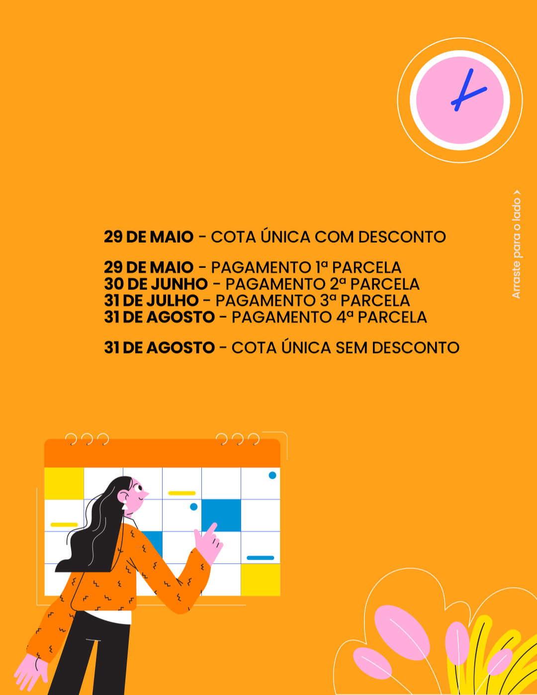 Para quem não puder realizar o pagamento à vista, também está disponível o parcelamento em até quatro vezes, com o seguinte cronograma: