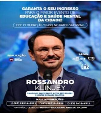 O Instituto Educacional Maria do Socorro promove, no dia 2 de outubro, às 19h, uma palestra especial com o renomado psicólogo e autor best-seller Rossandro Klinjey. Intitulada “Futuros Brilhantes Começam com Mentes Saudáveis”, a palestra abordará a relevância da saúde mental como pilar fundamental para o sucesso acadêmico e o desenvolvimento pessoal das crianças.