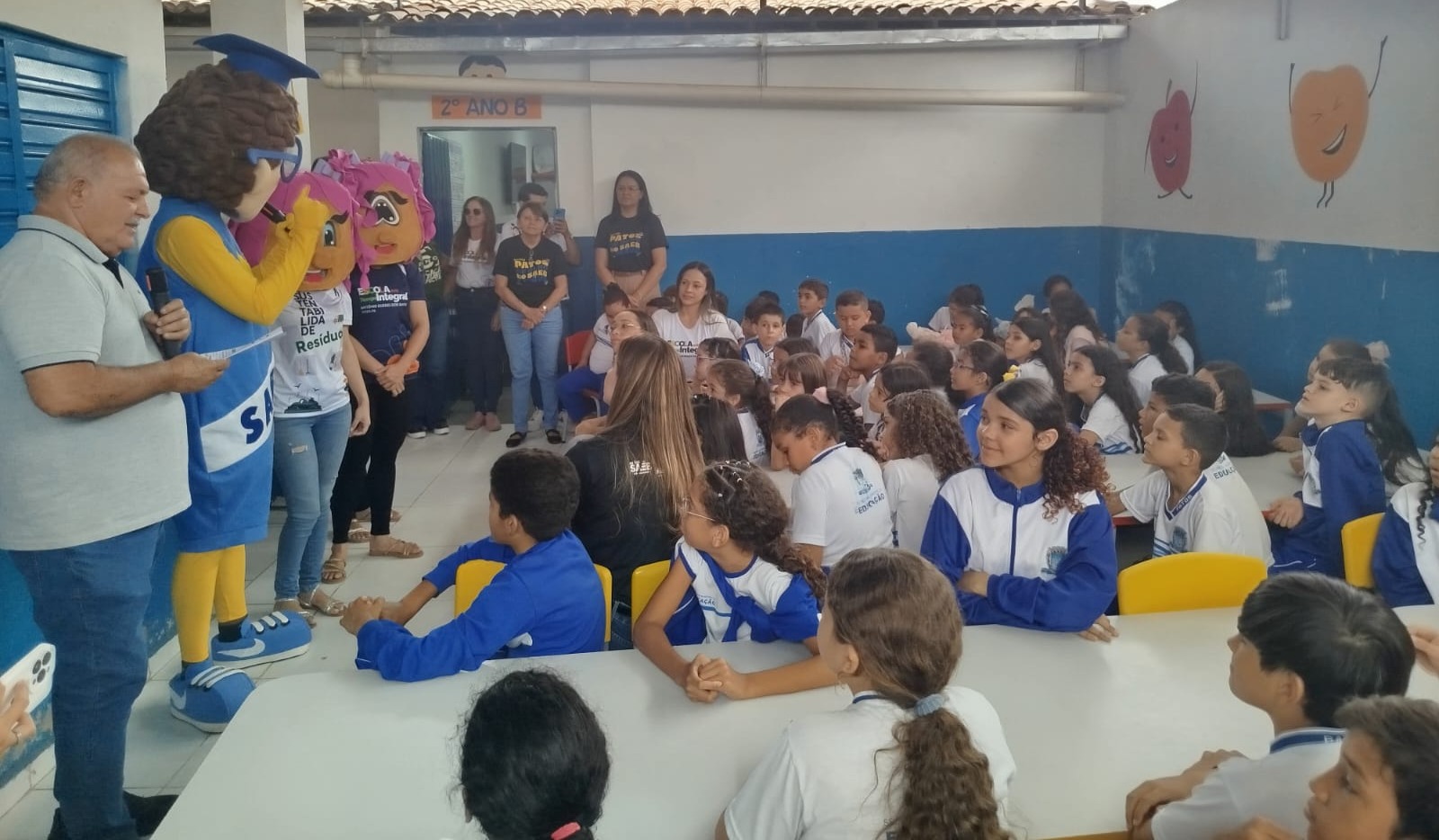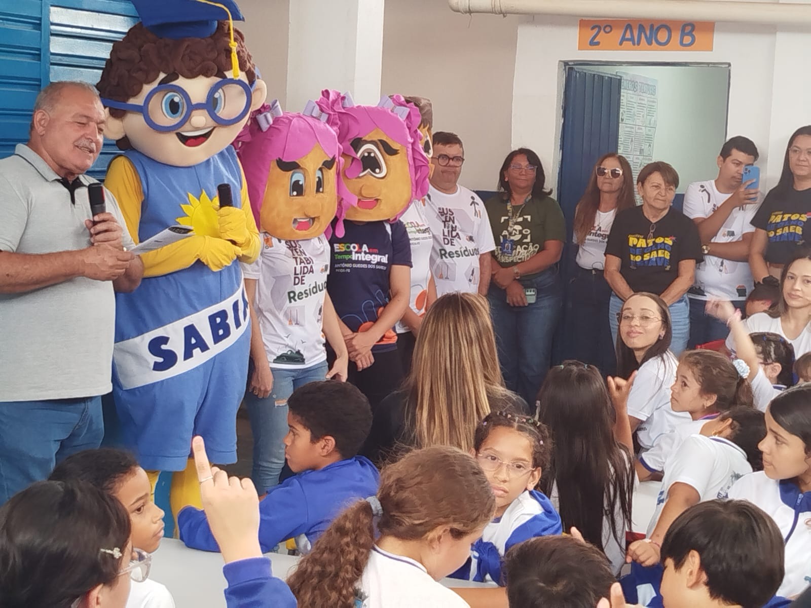 Com o objetivo de motivar os alunos para as próximas avaliações externas, como o Sistema Nacional de Avaliação da Educação Básica (SAEB) e o Sistema Integrado de Avaliação da Educação (SIAVE) na Paraíba, a Secretaria Municipal de Educação de Patos realizou uma visita especial à Escola Municipal de Tempo Integral Antônio Guedes do Santos, no Conjunto Nova Conquista (Mutirão), na manhã desta segunda-feira, 13 de outubro. A principal atração foi a apresentação do Mascote Sabix, símbolo da sabedoria e do Programa Meta Aprender.