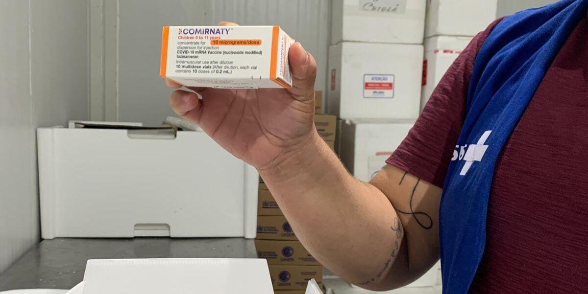 A Secretaria Estadual de Saúde recebeu, nesta terça-feira (18), mais um lote de imunizantes contra covid-19 para crianças. A remessa com 23.600 doses da vacina pediátricas da Pfizer é destinada à população de 5 a 11 anos de idade.