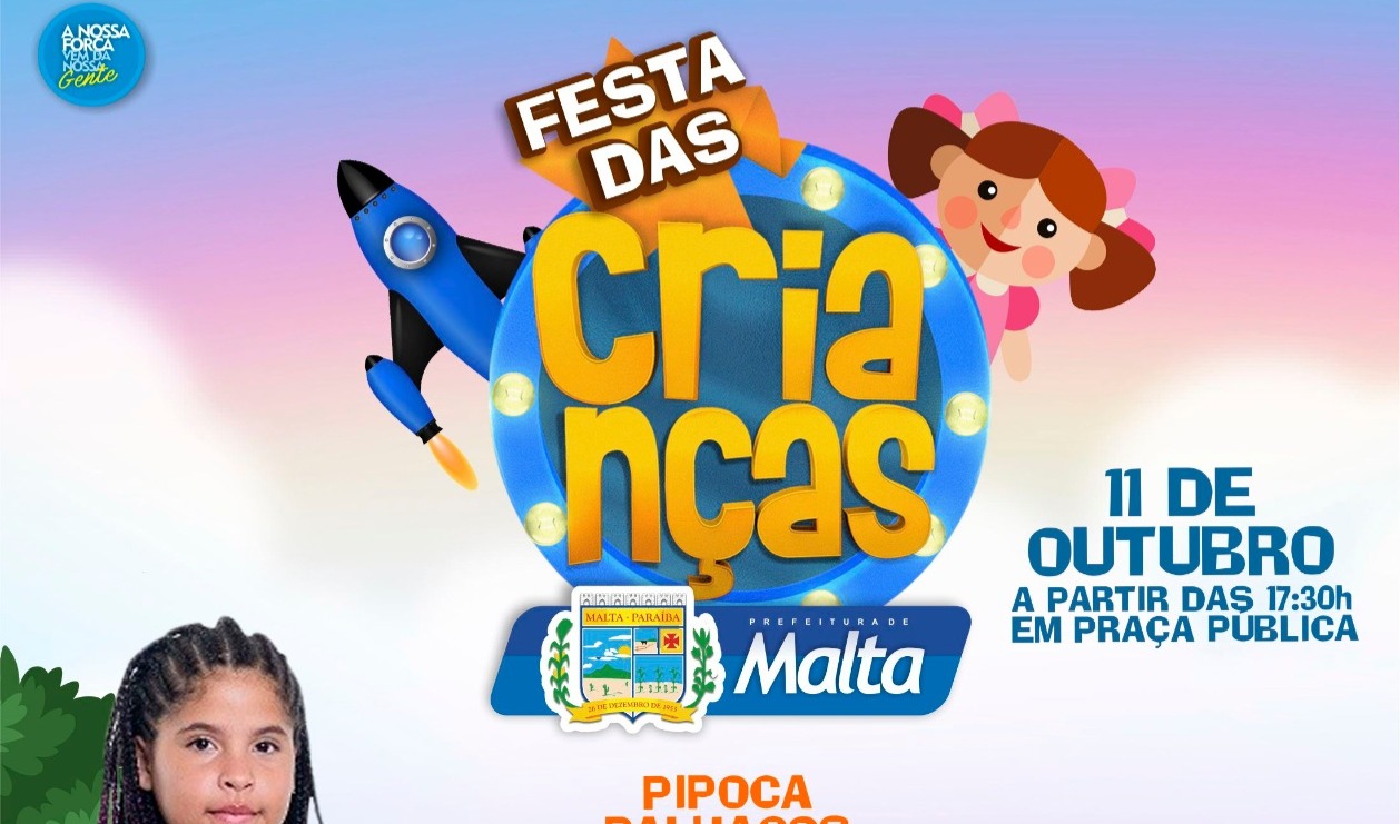 A Prefeitura Municipal de Malta, através das Secretarias de Assistência Social e Educação, realizará nesta sext-feira (11), véspera do Dia das Crianças, uma grande festa para homenagear todas as crianças do município de Malta.
