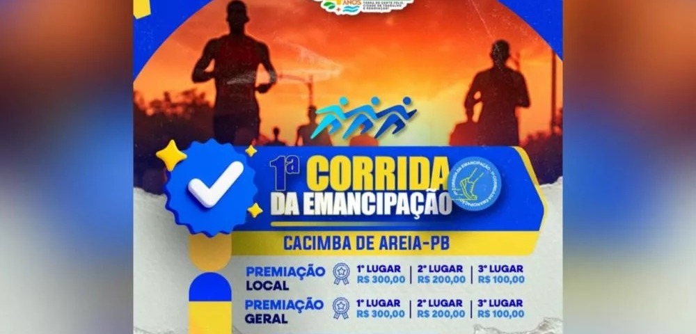 Todos os atletas inscritos receberão kit do corredor, e aqueles que concluírem o percurso serão contemplados com medalha de participação, reforçando o caráter inclusivo e comemorativo do evento. A 1ª Corrida da Emancipação é promovida pela Secretaria de Esporte, com apoio da Prefeitura de Cacimba de Areia, dentro do lema “Mais Trabalho e Renovação”, marcando de forma especial as festividades dos 64 anos do município.