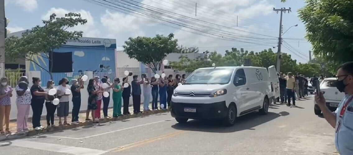 Em fila, na calçada do hospital, os funcionários, com balões nas mãos, acenavam enquanto o cortejo fúnebre passava pela rua. O corpo foi recebido com aplausos e homenagens. O corpo do pediatra foi sepultado no Cemitério São Miguel, no bairro Bel Horizonte, em Patos, sob forte comoção.