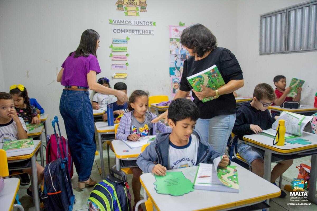 No dia 16 de abril, o município de Malta celebrou a entrega dos livros da coleção "Veredas da Leitura e da Escrita" para as turmas do 1° e 2° ano das escolas Cônego Joaquim de Assis Ferreira e Raimundo Gualberto dos Santos. Esta iniciativa é parte integrante do Compromisso Nacional Criança Alfabetizada, uma colaboração entre o governo federal, estados e municípios, com o objetivo fundamental de assegurar que as crianças dominem a leitura e a escrita na idade apropriada.