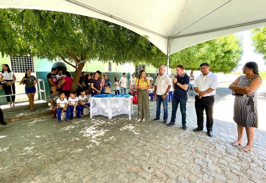 Além do prefeito e da diretora, também participaram da solenidade, o secretário de Saúde Leônidas Medeiros, secretária de Educação Adriana Carneiro, vereador e líder do governo Sales Júnior, demais secretários municipais e equipes da saúde e educação.
