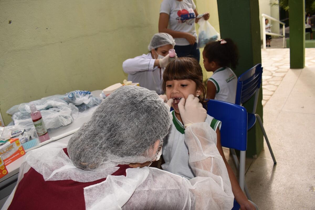 Nessa ação, foi priorizada a saúde bucal das crianças, onde os profissionais realizaram aplicações tópicas de flúor, e fizeram avaliações das condições da saúde bucal de cada criança, para saber da necessidade de se fazer algum tratamento dentário.