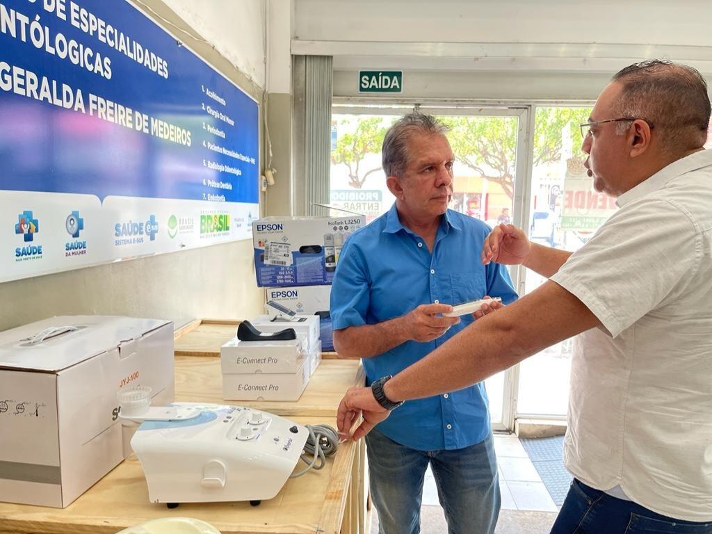 Na manhã desta quarta-feira, 6 de dezembro, o prefeito Nabor Wanderley e o secretário municipal de Saúde, Leônidas Medeiros, estiveram no Centro de Especialidades Odontológicas - CEO para oficializar a entrega de novos equipamentos. Os dois foram recebidos pela diretora do serviço, Elba Medeiros, e a dedicada equipe de profissionais.