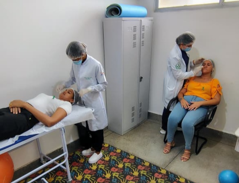 Dentre os serviços oferecidos nessa acolhida, os profissionais da Saúde de Quixaba puderam realizar drenagem linfática, ventosaterapia, aferição de pressão, teste de glicemia, auriculoterapia, eletroterapia capilar e limpeza de pele.