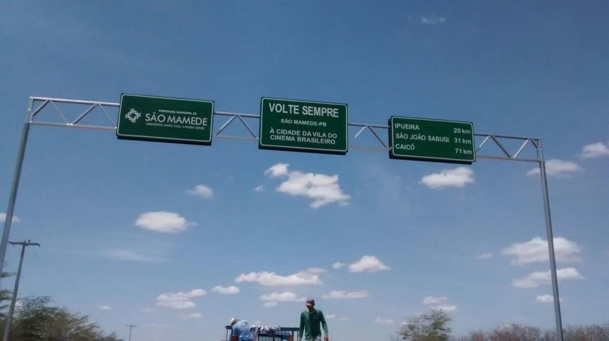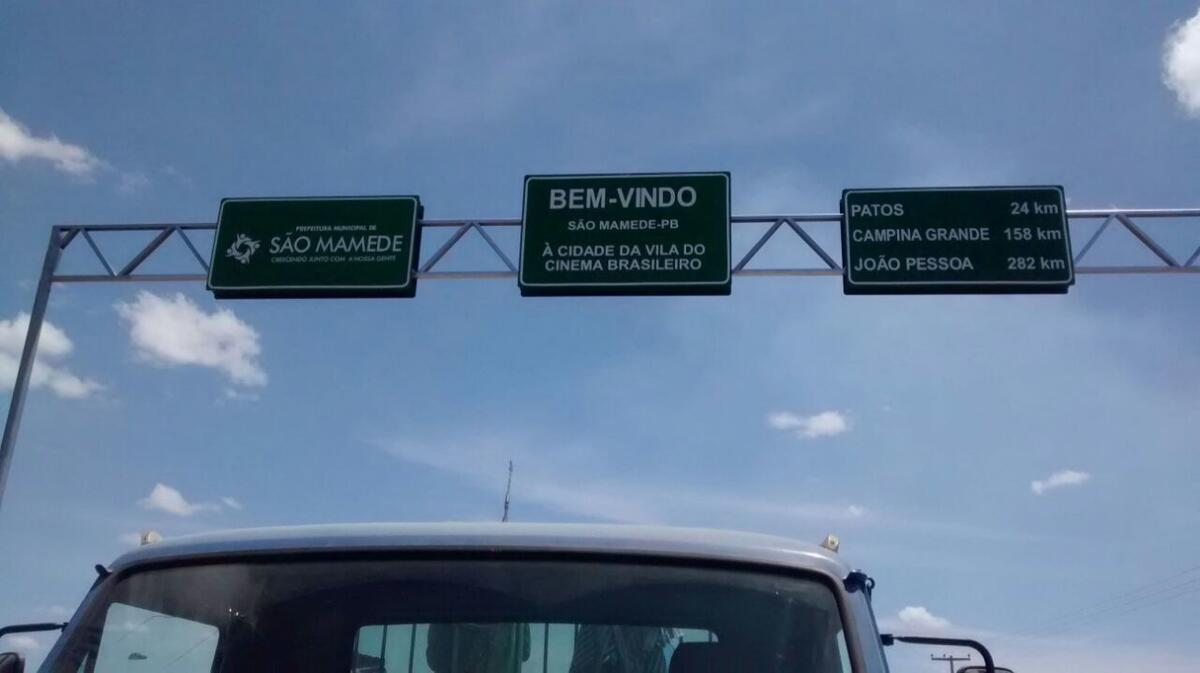Com os dizeres “Bem-Vindo– “À Cidade da Vila do Cinema Brasileiro” e "Volte Sempre “À Cidade da Vila do Cinema Brasileiro”, como também informações em KM das cidade de Ipueira, São João do Sabugi e Caicó, no Rio Grande do Norte, e no sentido a cidades da Paraíba, como Patos, Campina Grande e João Pessoa.
