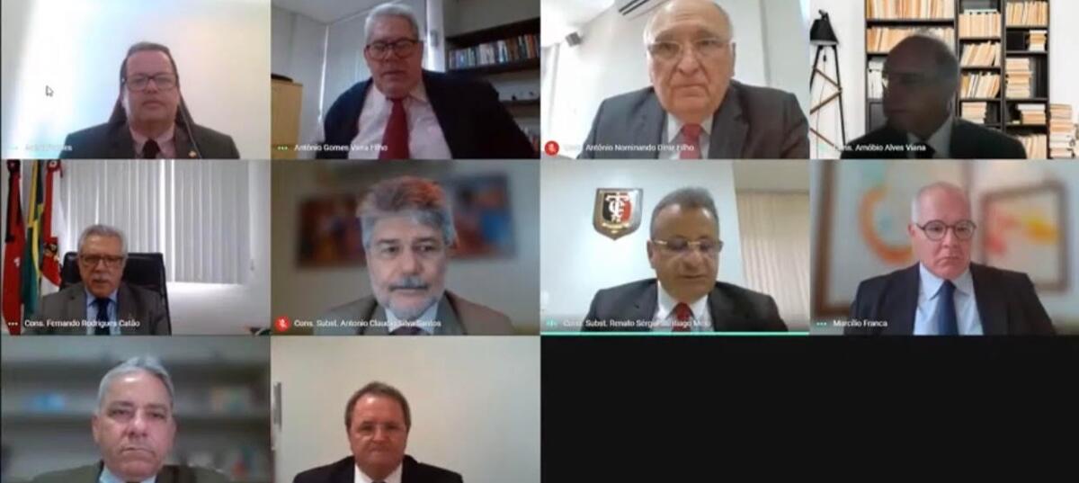 Presidida pelo conselheiro Fernando Catão, o TCE realizou sua 2293ª sessão ordinária remota, por meio de videoconferência, com a participação dos conselheiros Arnóbio Alves Viana, André Carlos Torres Pontes, Nominando Diniz e Antônio Gomes Vieira Filho. Também, os conselheiros substitutos Antônio Cláudio Silva Santos, Oscar Mamede Santiago Melo e Renato Sérgio Santiago Melo. O Ministério Público de Contas foi representado pelo procurador Marcílio Franca Filho.