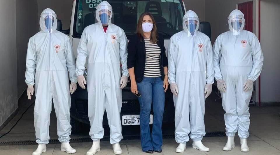 A prefeita de São José do Bonfim-PB, Rosalba Mota (MDB), entregou nesta segunda-feira (20), Equipamentos de Proteção Individual (EPIs), aos profissionais do SAMU da cidade. A gestora usou as redes sociais e postou uma foto ao lado de alguns desses profissionais.