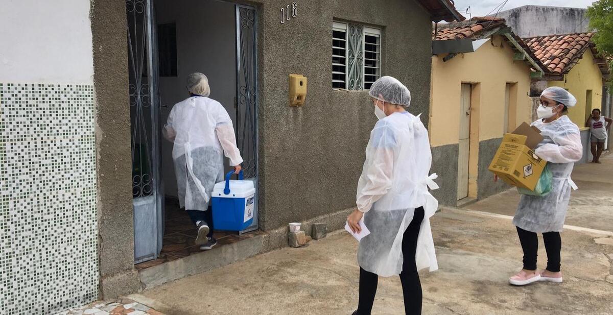 Equipes volantes compostas por agentes comunitários de saúde e vacinador, saíram em busca ativa pela cidade aplicando as vacinas.