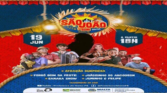 A Prefeitura de Malta, na Região Metropolitana de Patos, realizará a partir das 18h do próximo sábado, 19/06, o “São João Virtuá Danado de Bom”.