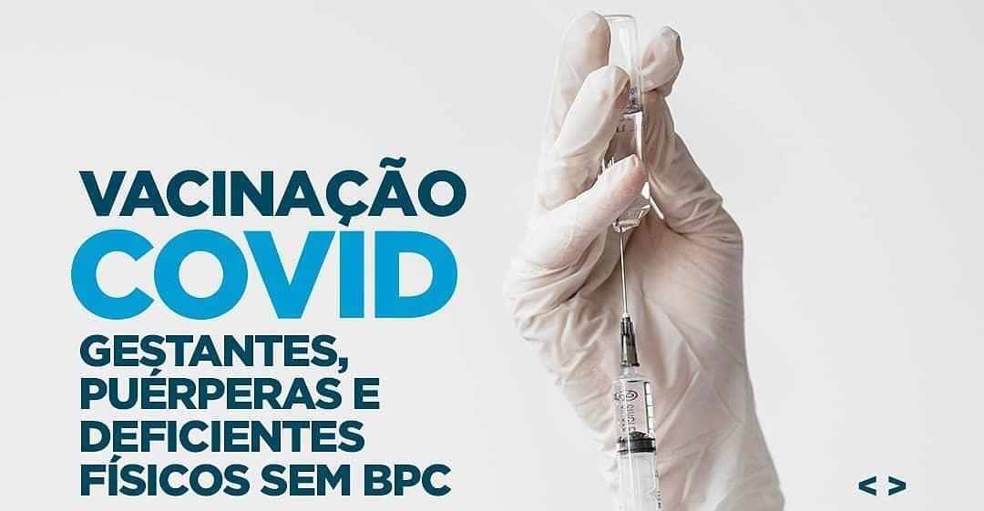 A vacinação desse grupo acontecerá no Colégio Cristo Rei, das 8h às 11h, e das 13h às 17h. Na segunda e na terça, dias 21 e 22, a imunização atenderá gestantes e puérperas. Já na quarta, quinta e sexta, dias 23, 24 e 25, serão imunizadas as pessoas com deficiência física e sem cadastro no BPC.