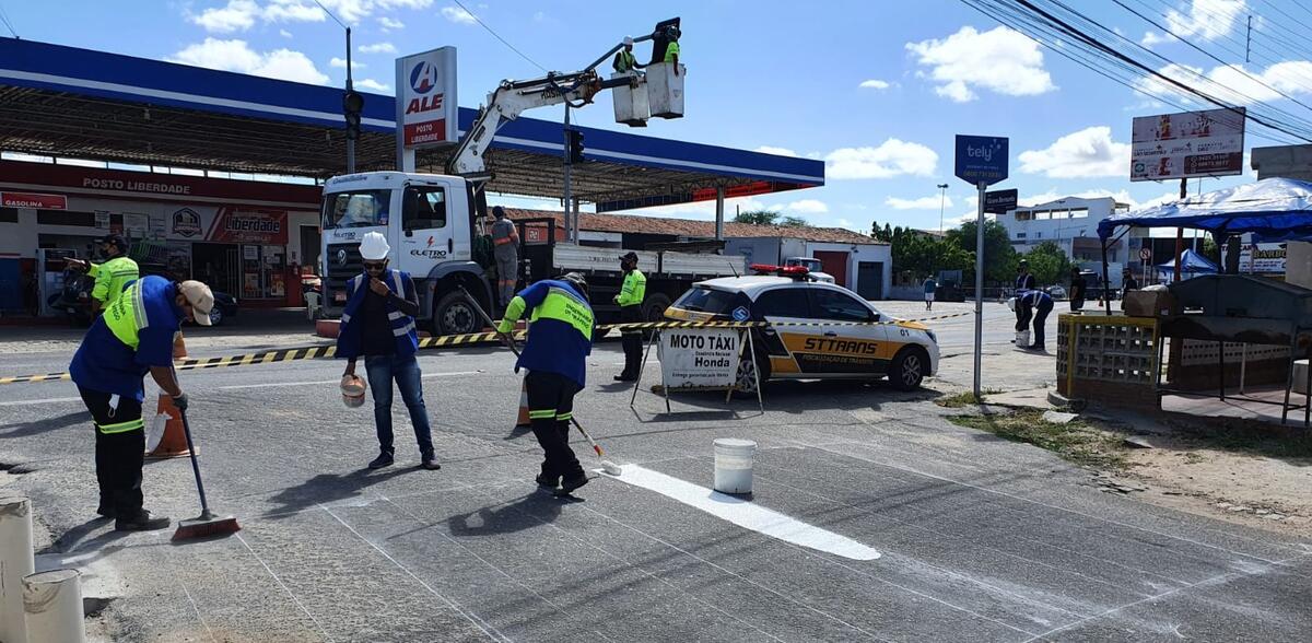 A Superintendência de Trânsito e Transportes realizou neste domingo, 11, melhorias na sinalização semafórica, vertical e horizontal do cruzamento das ruas do Prado e Cícero Bernardo, que fica entre os bairros Liberdade e Maternidade. As melhorias consistem na mudança dos semáforos de lâmpada por LED, como também a alteração do tempo do semáforo para quatro tempos.