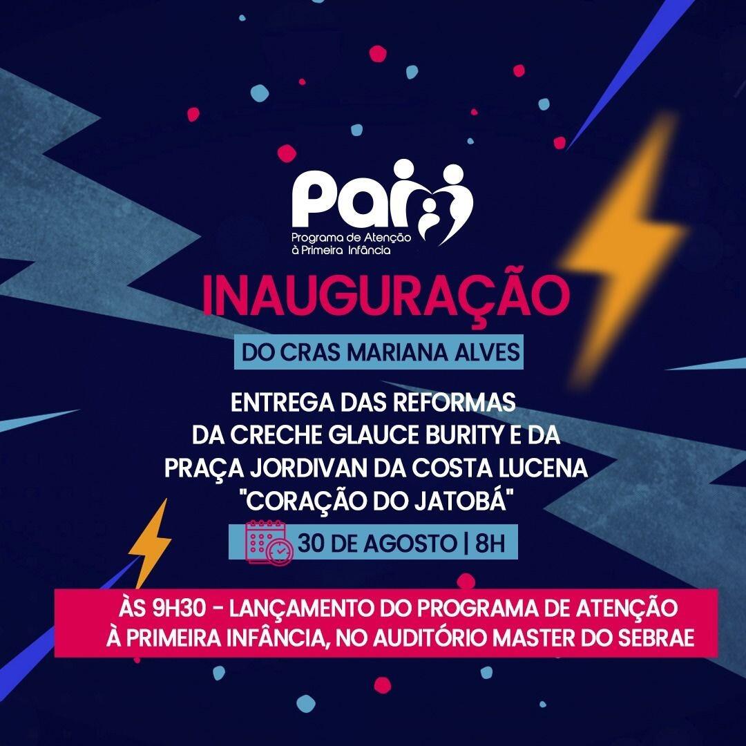 A manhã se inicia com a inauguração do Complexo, que será composta pela Praça Jordivan da Costa Lucena "Coração do Jatobá", que ganhou novo layout em alusão ao PAI; pelo CRAS Mariana Alves, que ganha uma nova sede, no local onde funcionou o antigo CSU; e pela Creche Municipal Glauce Burity, que passou por reforma e melhorias em sua estrutura física.