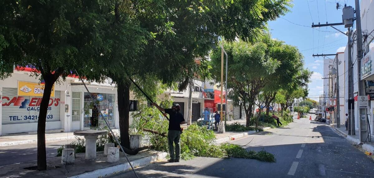 Manoella Rodrigues ainda informou que todo o centro da cidade será contemplado com a poda de limpeza das árvores, e que o material resultante disso vai ser triturado e utilizado como adubo.