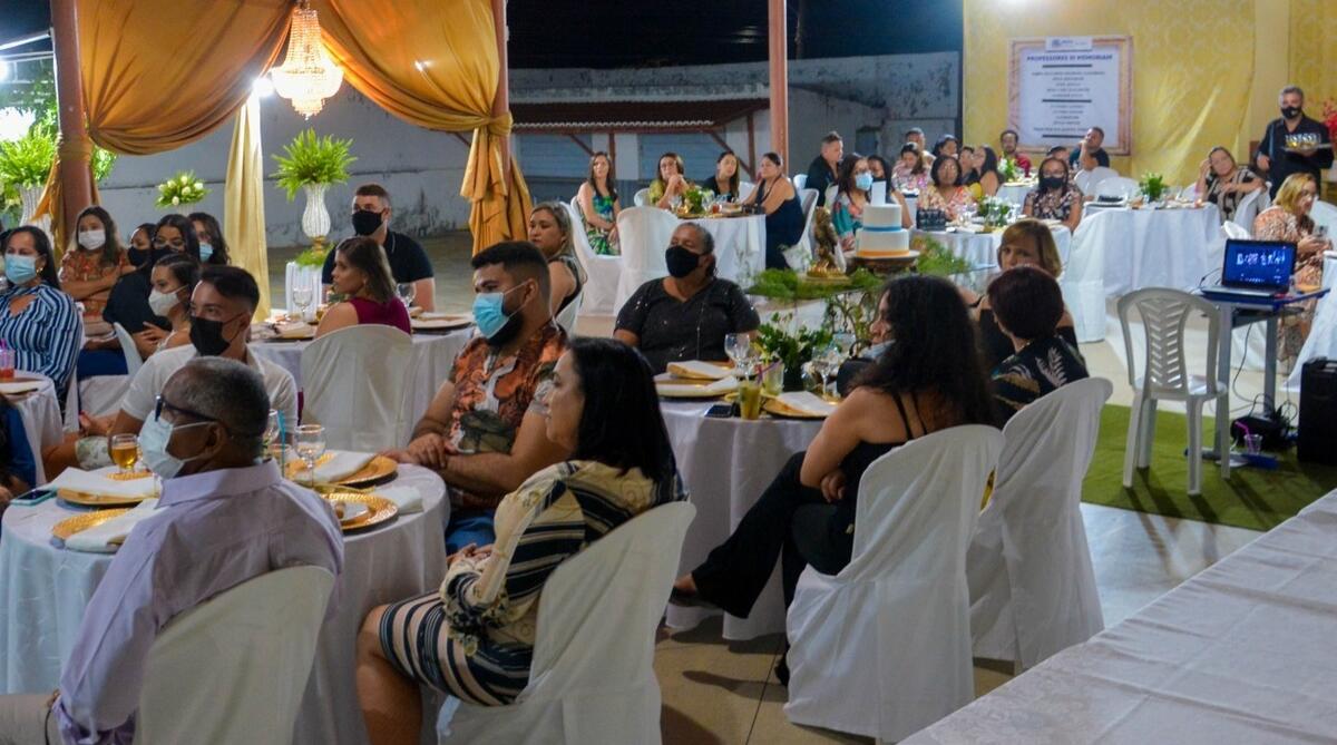 A Secretária de Assistência Social do município, Ana Peixoto e o secretário de Administração, Diafrânio Fontes compareceram ao jantar e parabenizaram toda a organização do evento, que seguiu os protocolos de segurança contra a Covid-19 e ofereceu essa linda homenagem aos professores.
