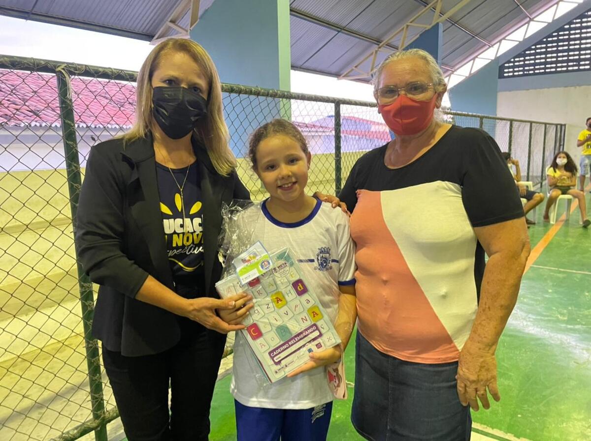 “O META Aprender já vem sendo desenvolvido, iniciamos com a avaliação diagnóstica, onde pudemos verificar os níveis de aprendizagem de leitura, alfabetização, e até mesmo a matemática de nossos alunos, e já estamos com todo esse relatório pronto, dando seguimento ao programa. E hoje estamos com esse marco, entregando esse material estruturado, para que possa dar esse suporte aos nossos professores e nossos alunos. Além de garantir toda essa metodologia para a sala de aula, o material pode ser levado para casa, por isso esse chamado aos pais que hoje aqui se encontram,” disse a articuladora do programa META Aprender, Jesuíta Guedes.