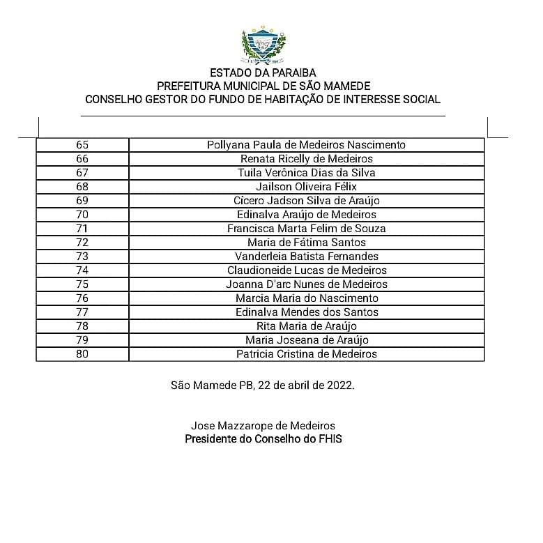 Prefeitura de São Mamede divulga lista de contemplados do Loteamento Jardim São Mamede
