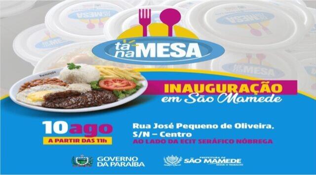 Nesta quarta-feira, 10/09, começará o Programa “Tá na Mesa”, uma parceria da Prefeitura de São Mamede, na Região Metropolitana de Patos, com o Governo do Estado. Serão distribuídas 200 refeições/dia ao preço de R$ 1,00.