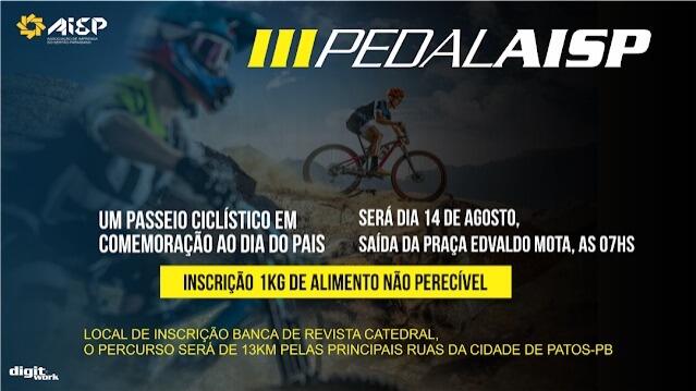 A Associação de Imprensa do Sertão Paraibano – AISP está promovendo o III PEDALAISP que é um passeio ciclístico comemorado no dia dos pais. Essa já é a terceira edição do evento, a última foi no ano de 2018.