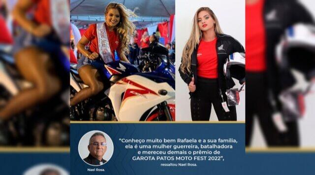 Ex-prefeito de Malta parabeniza Rafaela Santos por vencer Concurso Garota Patos Moto Fest 2022