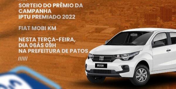 Prefeitura de Patos sorteará, nesta terça (06), um carro 0km entre contribuintes que pagaram IPTU