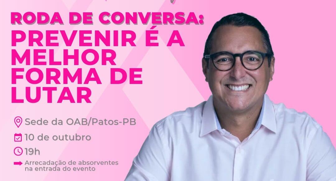 A Comissão da Mulher Advogada da OAB de Patos, convida todas as colegas da Subseção, incluindo as estagiárias, acadêmicas, bacharéis sem inscrição na Ordem, esposas ou mães de advogados para participar da abertura do nosso Outubro Rosa na Advocacia Feminina, que acontecerá na próxima segunda-feira, dia 10 de outubro, às 19h, na sede da OAB.